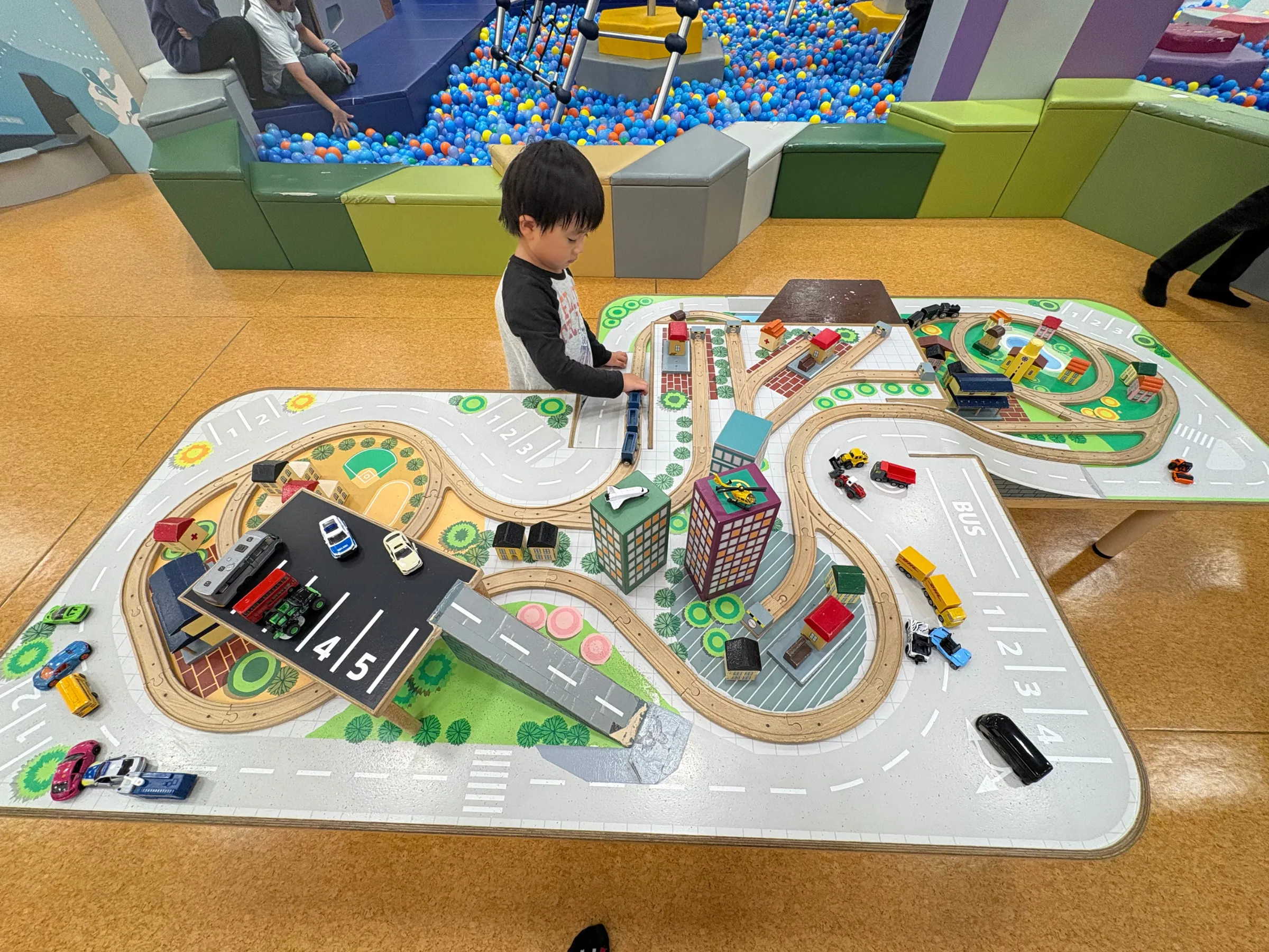 特にsikuの車コーナーは、道路や街をイメージしたプレイテーブルがあり、車好きの子どもはかなり集中して遊んでいました。