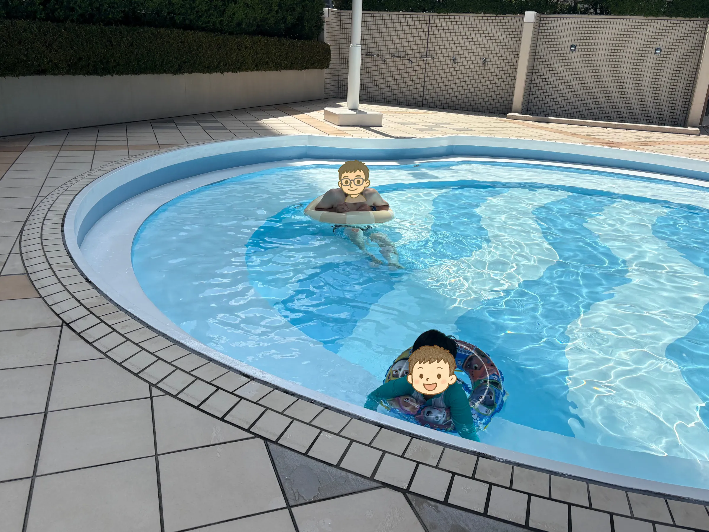 息子は浮き輪をつけて大はしゃぎし、なんと2時間以上も水から上がらず遊び続けるほど。大人は途中で休憩していても、本人は夢中で笑顔いっぱいでした。